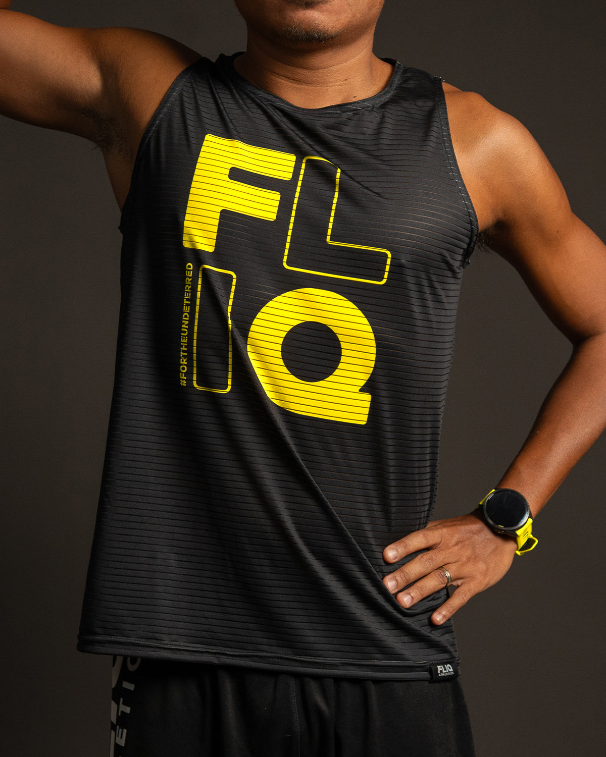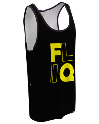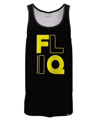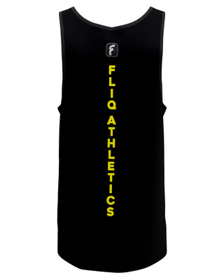 This black performance tank is a masterclass in minimalist impact. The stacked yellow crackles with bold clarity, focused energy ready to strike. The bright yellow hue delivers a clean jolt of attitude, blazing confidently against the blackout fabric .